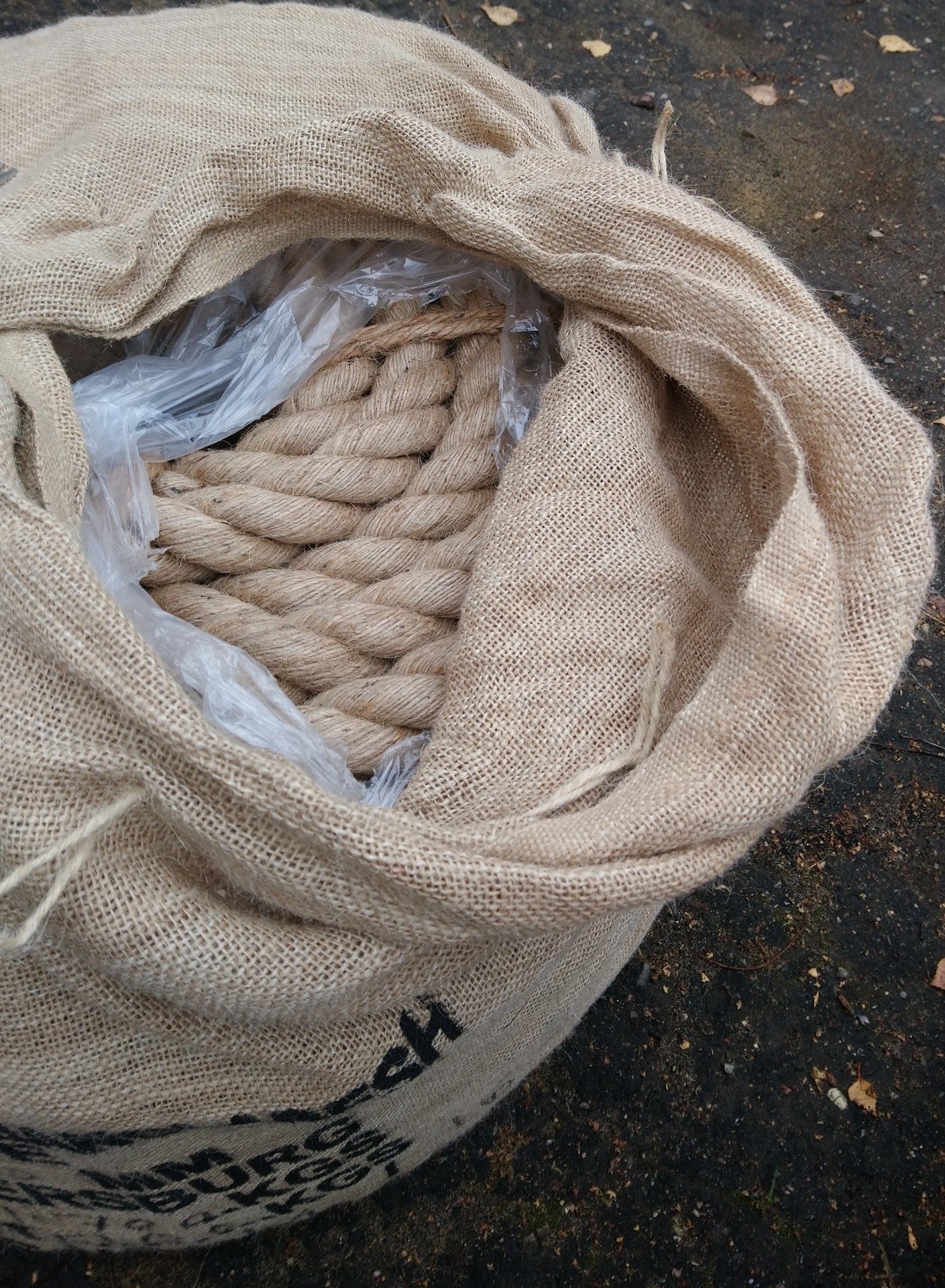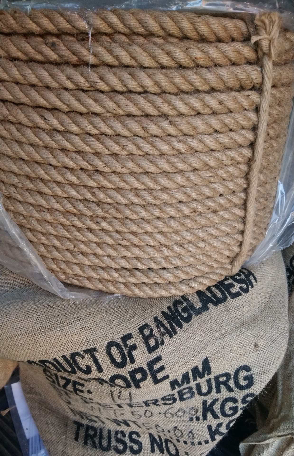Канат джутовый в бухтах по 25кг производство Бангладеш. Диаметры канатов:
